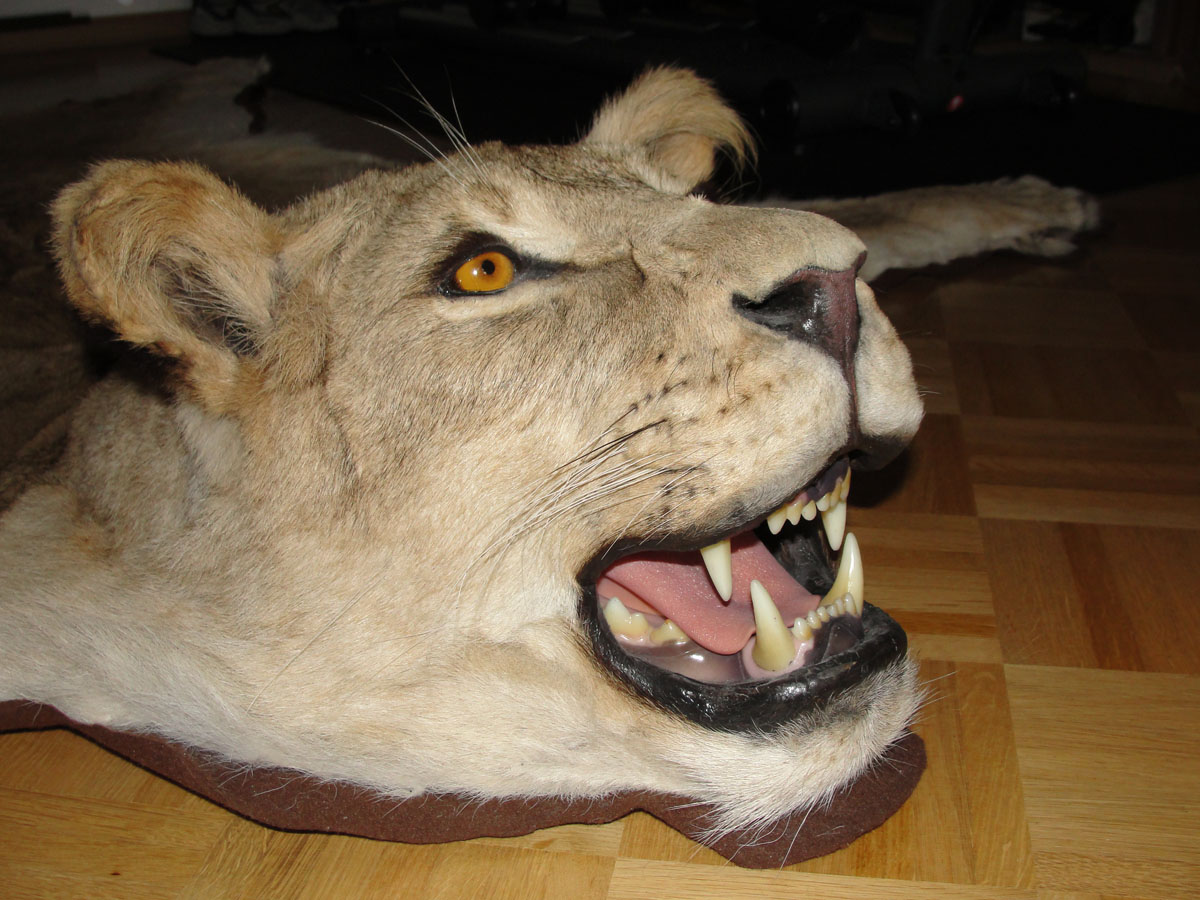Some years ago the wish for a lioness rug started to grow inside of me. Maybe it had something to do with my former best friend who was talking about lionesses all the time (he was in love with these animals x3). But we have to be honest, big cats are very impressive and after a skull, a claw and a piece of lion fur it was just a matter of time that there would be a rug too.